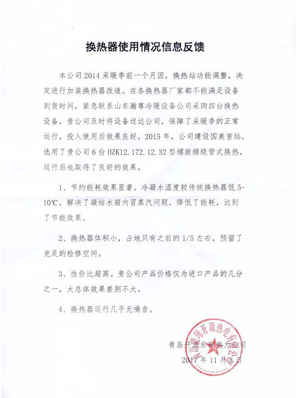山東瀚尊冷暖設備有限公司坐落在美麗的齊國古都---淄博,是一家以換熱(冷凝)產品研發(fā)、生產、營銷為一體的企業;自2008年以來,通過與中外知名熱力設備制造商合作以及自主探索和創(chuàng)新,于2010年成功研制生產出了公司第一臺螺旋纏繞管式換熱器;同時,公司依托自身強大的技術力量和研發(fā)能力,于2016年成功研制生產無死角無菌級雙管板式換熱器,近年來,公司努力走在中國換熱器行業的前列,致力于創(chuàng)造民族品牌,為用戶提供專業技術支持與服務......